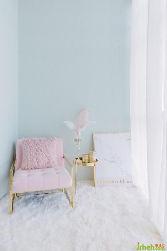 少女粉的座椅、金色復(fù)古的燭臺(tái)、輕柔的白色紗簾充構(gòu)成滿(mǎn)滿(mǎn)的慵懶少女氣息。室內(nèi)設(shè)計(jì)師