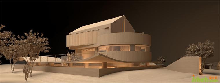 酒莊設(shè)計(jì)功能規(guī)劃上充分考慮運(yùn)營需求,劃分餐飲、陳列售賣、酒窖等展陳空間。一層及二層采用小體量坡頂結(jié)構(gòu)體塊,貼合傳統(tǒng)鄉(xiāng)村建筑基本形態(tài)。一層功能作為水吧操作區(qū)及酒產(chǎn)品售賣區(qū)。二層作為私密空間的品酒室與餐廳包間使用。室內(nèi)餐飲區(qū)利用弧形曲線跟空間融合,增添了靈動與自由生長之意,巧妙完成了動線規(guī)劃。