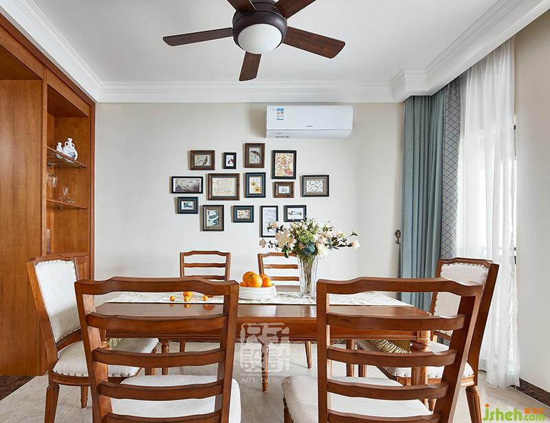 實木材質(zhì)的餐桌椅體現(xiàn)質(zhì)樸醇厚的感覺,錯落有致的裝飾畫,恰到好處的采光,給予家人愉悅的就餐氛圍。
