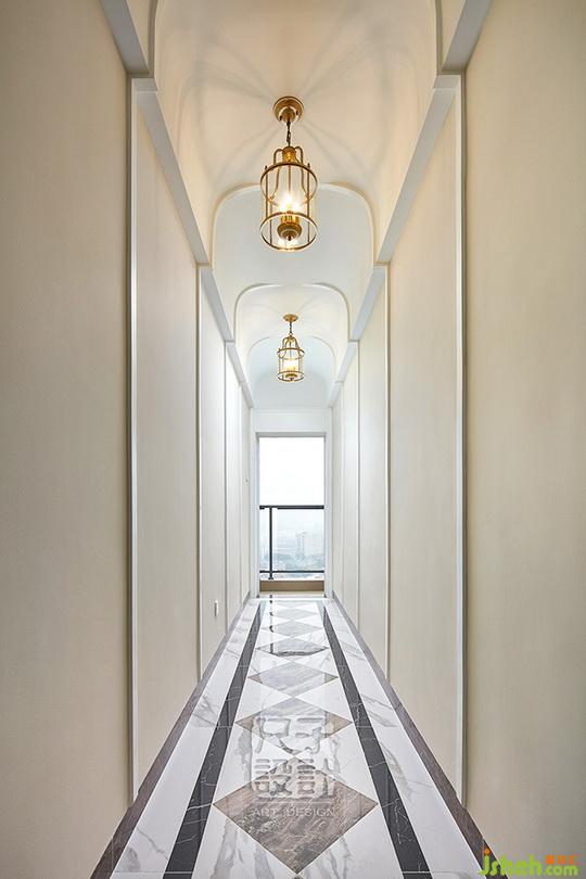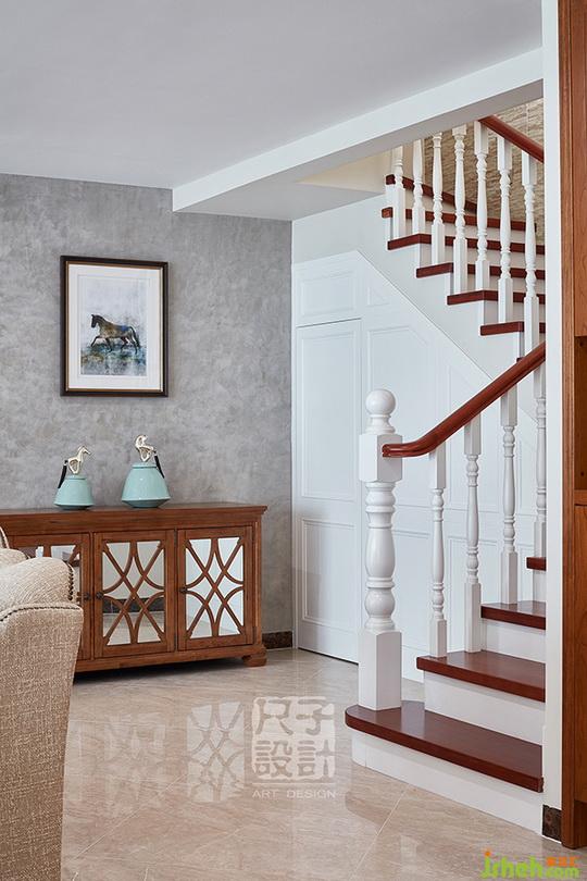 簡約流暢的木扶手,讓空間得到自然延伸;樓下的造型空間增加了房屋的收納功能。