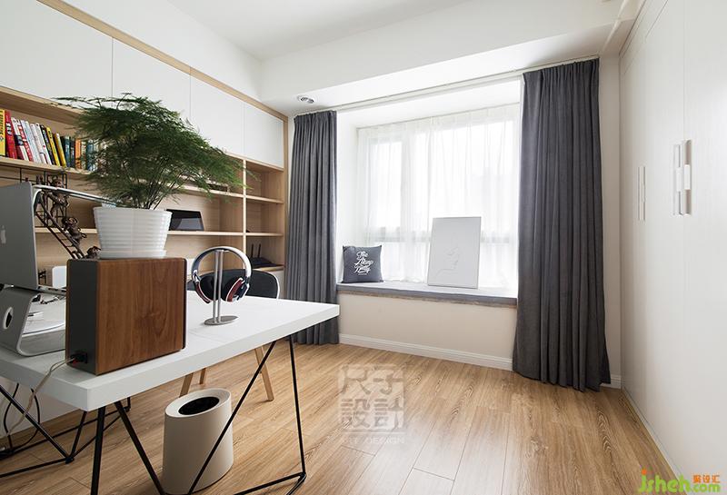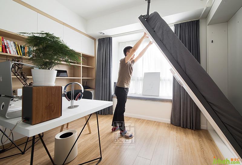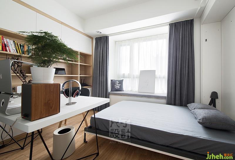 為了更合理的利用每一寸空間,次臥可以將床收起,平日里則是一個(gè)明亮的書房。