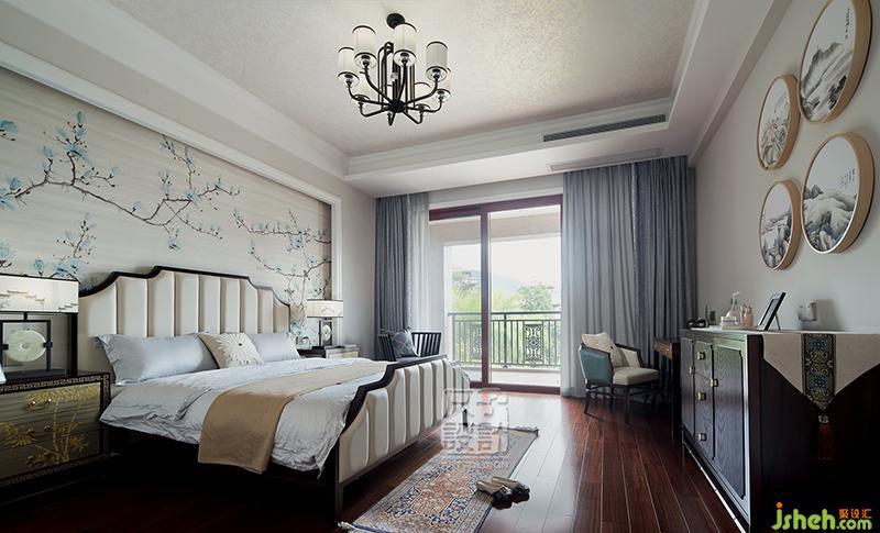 居之然,處之安,典雅的主臥是心靈的休憩之所。背景墻上的花鳥雖是寥寥幾筆卻很傳神,靈動的鳥兒躍然壁上,仿佛下一秒就可在耳邊輕語。
