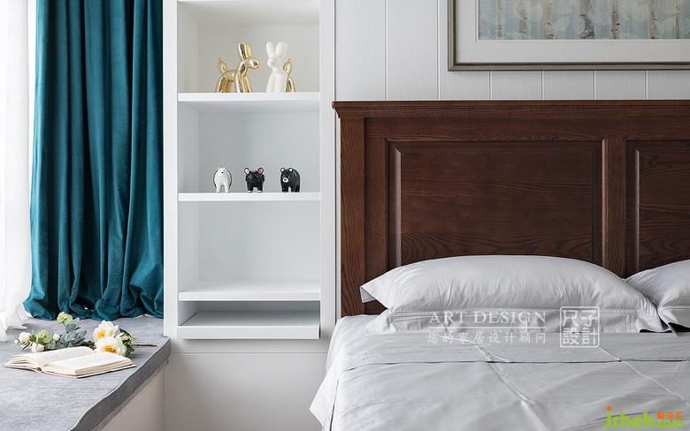 我們?cè)诳看耙粋?cè)增設(shè)計(jì)了壁龕,讓床頭背景的視覺(jué)效果更加完整;底部采用抽拉式的床頭柜,方便業(yè)主使用。