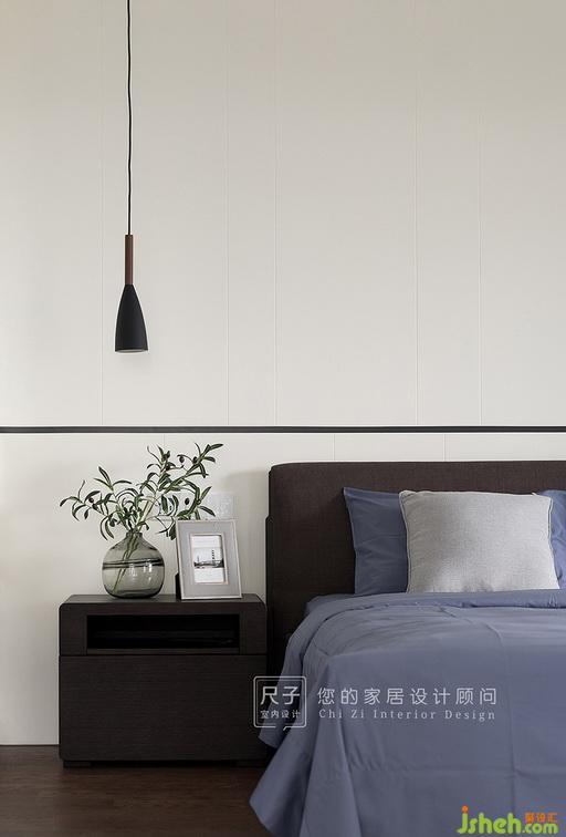 墻面做了墻漆分色處理,高級灰+低純度的藍,文藝又清新;裝飾畫、抱枕以及窗簾色彩與空間主色相呼應,營造溫馨自然的感覺。