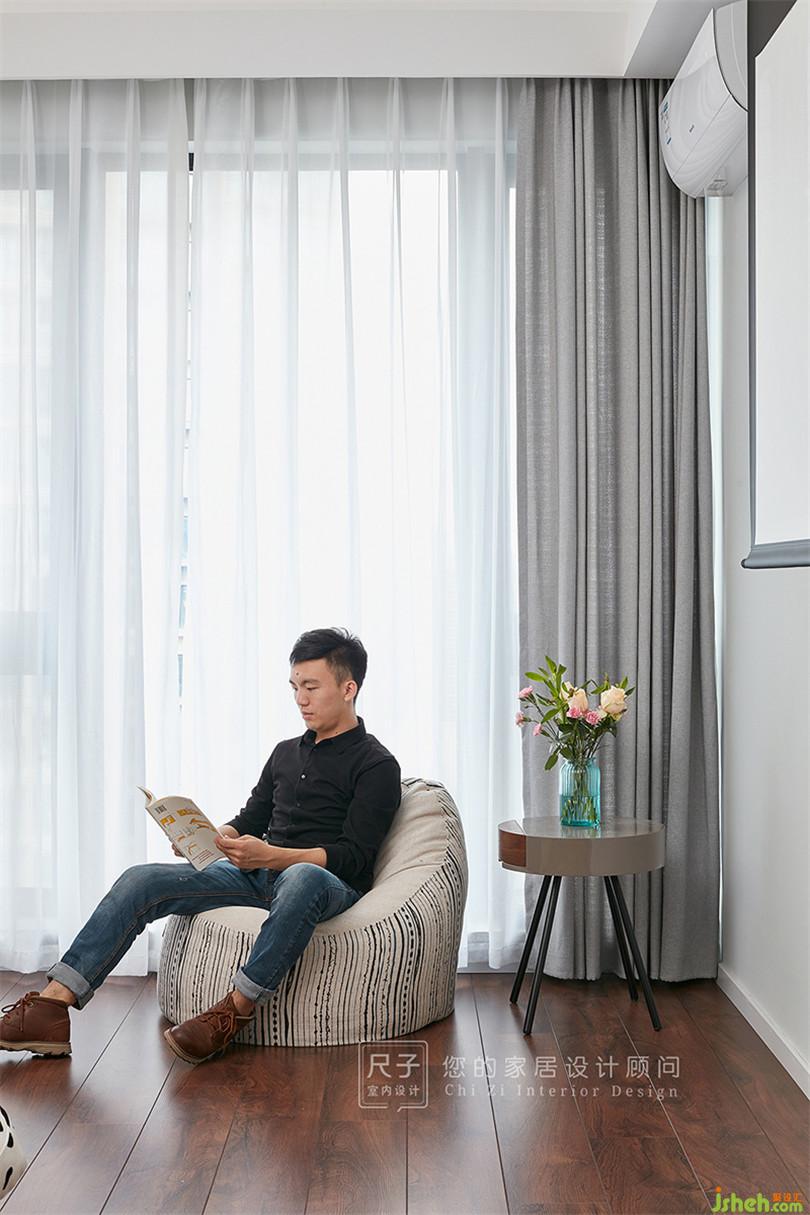 拾階而上,便是開放式的多功能房。這里既是業(yè)主的書房,也是他們的琴室;拉上窗簾,又是一家人理想的影視廳。