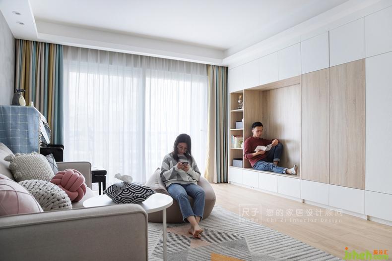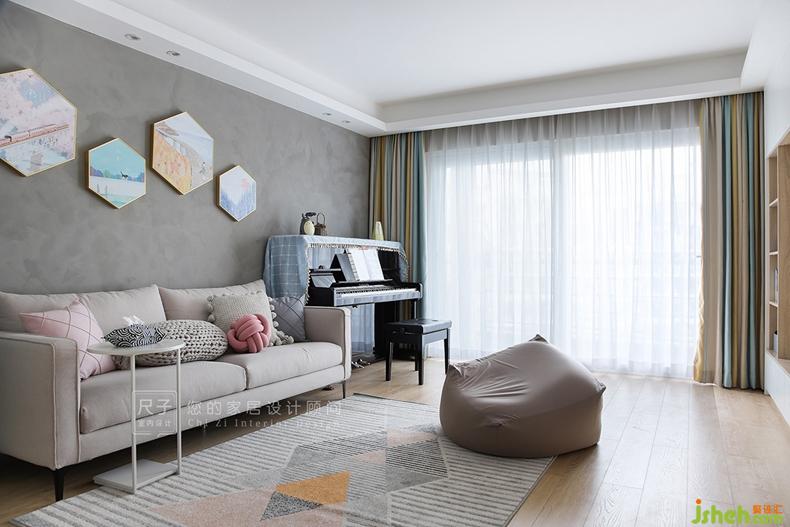 白色+木色的電視柜給空間增添一抹溫潤(rùn)的質(zhì)感,暫不打算安裝電視,但是預(yù)留出了位置?,F(xiàn)在這里還可以作為給孩子布置每月主題,發(fā)揮創(chuàng)意的地方。