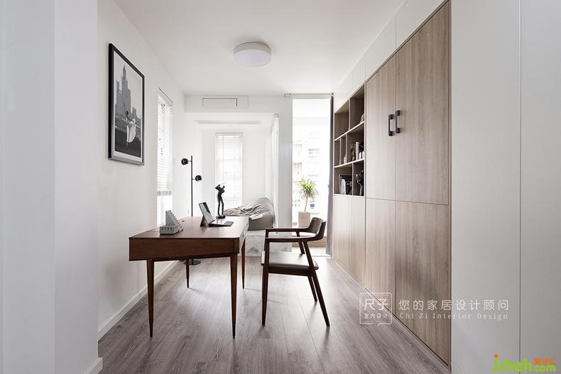 入戶右轉(zhuǎn)便是這個(gè)家的書(shū)房空間,關(guān)上門(mén),屋內(nèi)是一個(gè)靜謐的獨(dú)立空間,打開(kāi)門(mén),書(shū)房又能與主空間相連接。