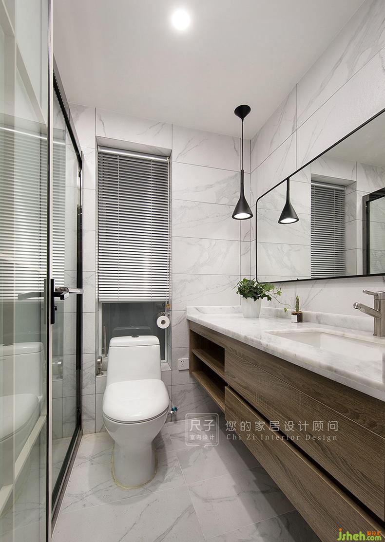 秩序感十足的瓷磚與溫暖的木色,構(gòu)成了簡約實用的衛(wèi)浴空間。