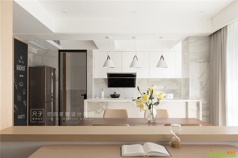 一方小窗,讓客餐廚以及書房成為一個整體。即使丈夫身處書房,也能透過窗洞第一時間關(guān)注到在餐廚忙碌的妻子,關(guān)愛與陪伴皆在細(xì)微之處。