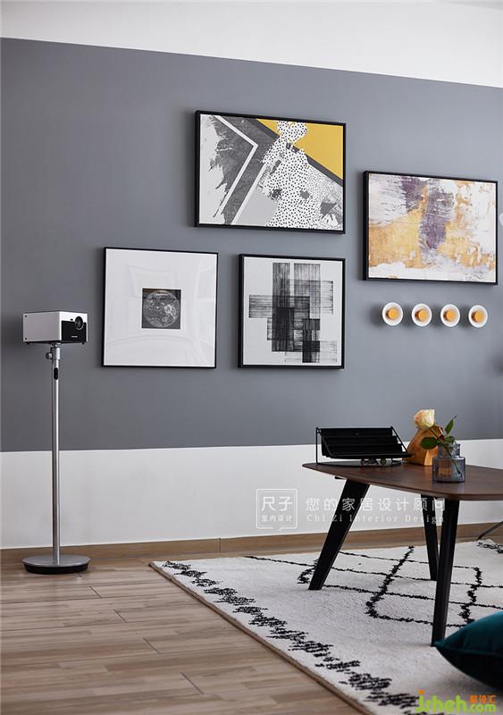墻面局部分色的設計與大小不一的掛畫搭配,讓客廳氛圍滿滿。室內設計師
