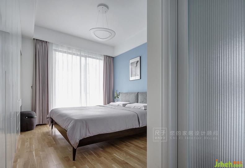 清涼的淡天藍(lán)色再次出現(xiàn)在私密的主臥空間,包裹著沉穩(wěn)的灰與淺粉,在柔和的木色大背景下上演著關(guān)于歸宿的故事。
