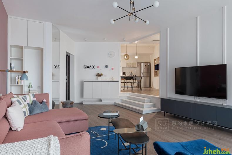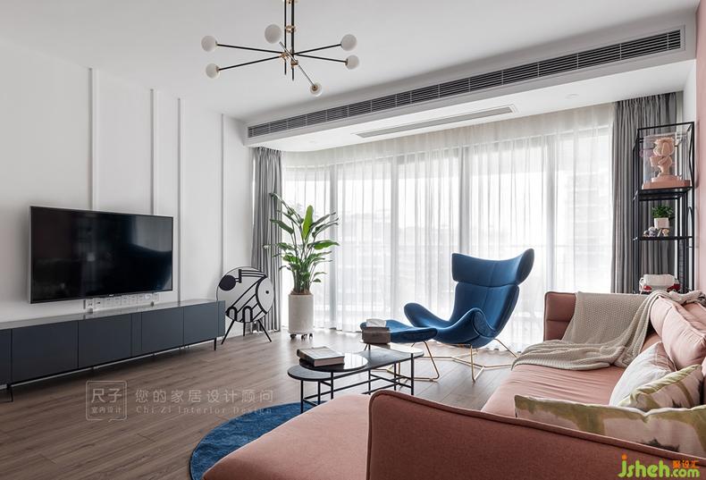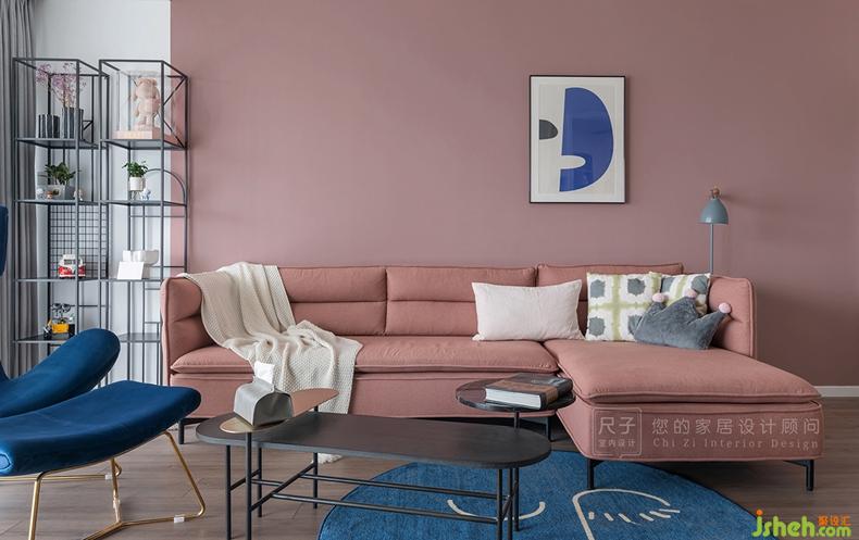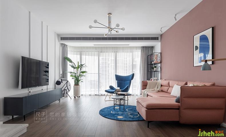 客廳主要通過軟裝打造業(yè)主想要的溫馨氛圍。室內(nèi)設(shè)計師大背景以及主家具色彩皆為業(yè)主喜愛的臟粉,這種柔美而不失風(fēng)情的色彩,透著復(fù)古輕奢的優(yōu)雅知性,二者在明度上的區(qū)別,讓空間有了層次韻律的變化。