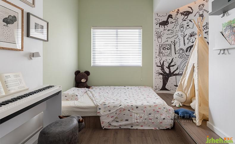 清新的淡綠作為兒童房的肌底,令人倍感清爽??蓯鄣膲?、玩偶,為空間增添絲絲童趣。
