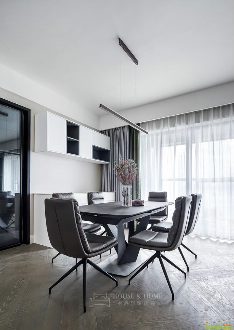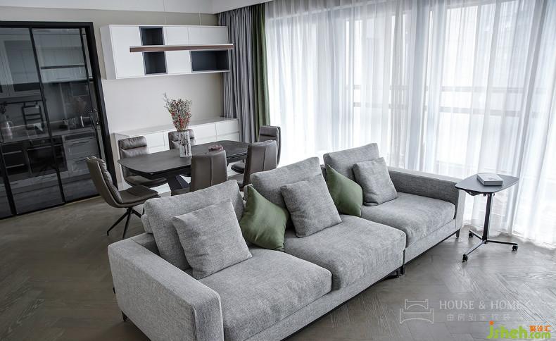在高級(jí)灰的空間中,點(diǎn)綴富有生機(jī)的淺綠色窗簾、抱枕,以及質(zhì)感非常的灰棕調(diào)家具。當(dāng)光線照進(jìn)屋內(nèi)的那一刻,溫暖、舒適與沉靜,在內(nèi)心充盈。