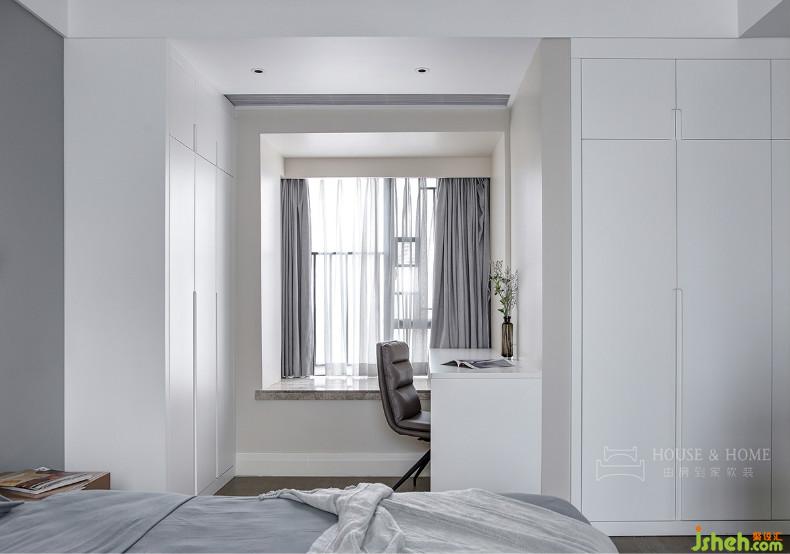 依飄窗搭建的閱讀區(qū),也是Z小姐的梳妝臺(tái)??紤]到實(shí)際需求,我們將衣帽間打通,釋放出的空間用來做主臥和次臥的兩面收納柜。