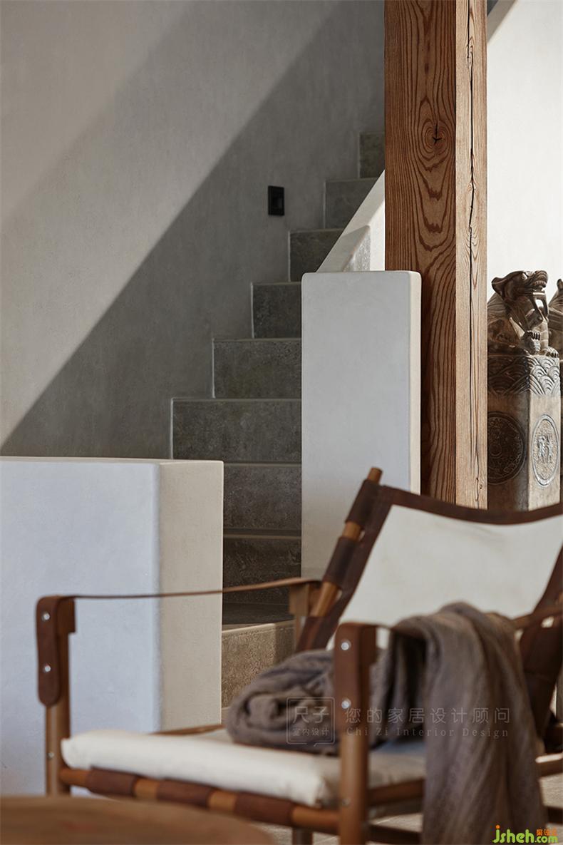 樓梯口擺放了一排拴馬樁,取門庭興旺之意。室內(nèi)設(shè)計(jì)師
