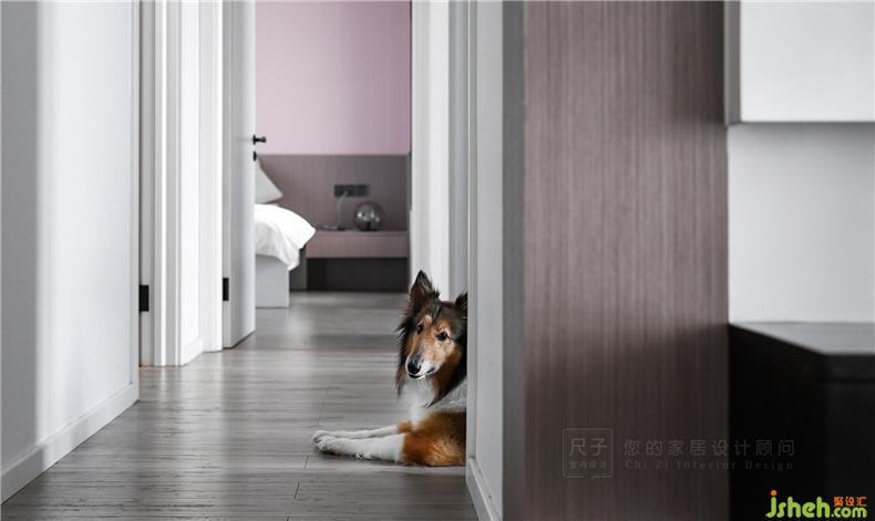 有別于客餐廳的理智克制,主臥是被溫柔粉包裹的溫馨世界,室內(nèi)設計師木質(zhì)與?;技毭艿募y理讓清透的空間有了更深刻的質(zhì)感。