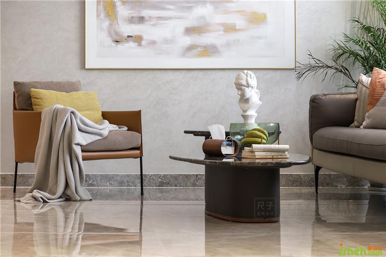 簡(jiǎn)化裝飾,墻面柜體以柔和的線條賦予空間挺拔的韻味;室內(nèi)設(shè)計(jì)師高級(jí)灰依舊發(fā)揮著它調(diào)劑作用,加州橙、檸檬黃都在它的包容下優(yōu)雅而自持。