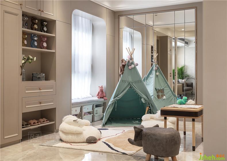 將這一片開闊的空間規(guī)劃為孩子們的活動(dòng)區(qū),玩鬧、畫畫、練舞……小朋友們可以自由安排這一片區(qū)域。