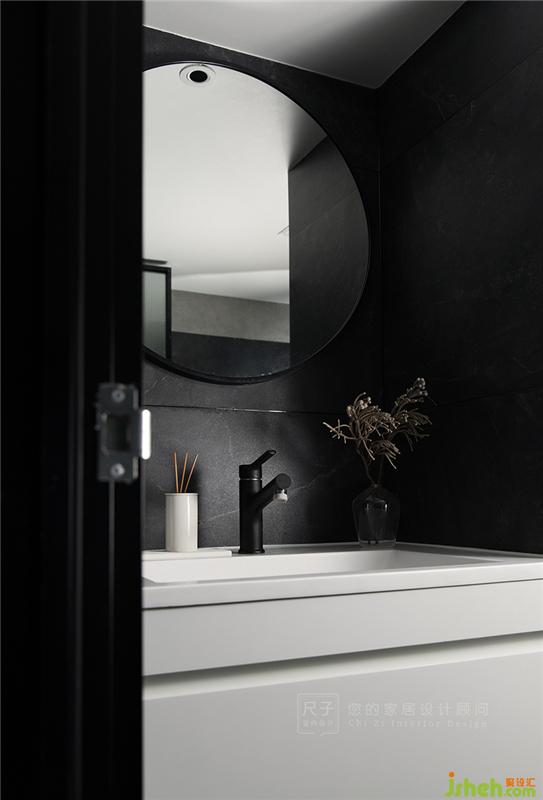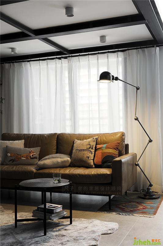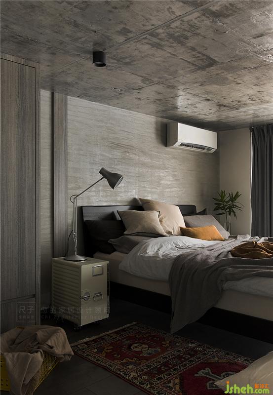 黑白灰、水泥墻營造的冷靜克制氛圍,讓人不由得放慢節(jié)奏去思考;復(fù)古個性的床頭柜與地毯,柔軟舒適的床品抱枕,這些細節(jié)處的軟裝搭配又讓整個家在理性中不乏溫情。