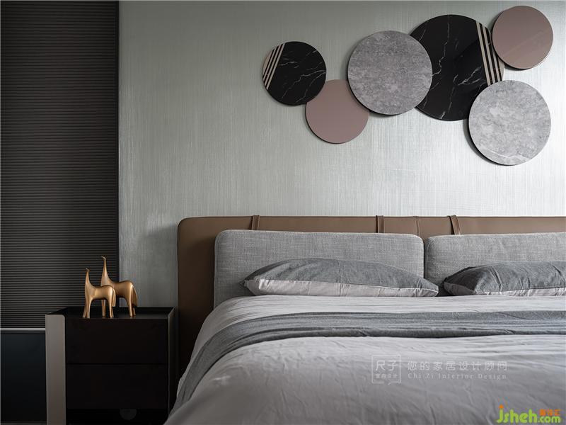 主臥色彩上更為低調(diào)柔和,大面積灰色的鋪陳讓空間更顯寧靜雅致。