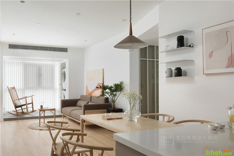 理想中“家”的模樣,簡單而又純粹,便是在這一隅方寸內(nèi),陽光充足,綠意盎然,每一寸陽光都自有歡喜。室內(nèi)設(shè)計師以白色為主調(diào),配以淡灰、木色,材質(zhì)方面多用白蠟?zāi)?藤編材質(zhì),營造自然質(zhì)樸、文藝的感覺。