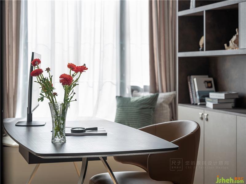 書房進(jìn)門是鋼琴區(qū),再進(jìn)來是辦公的的區(qū)域,一體式的書柜更能保留“書房”整體的感覺。自然光經(jīng)由飄窗進(jìn)入室內(nèi),延續(xù)愜意舒適的氣息。