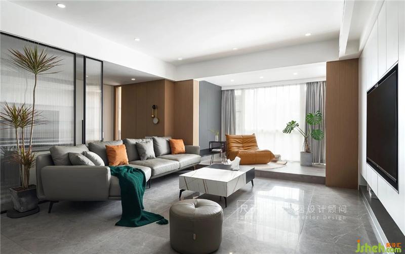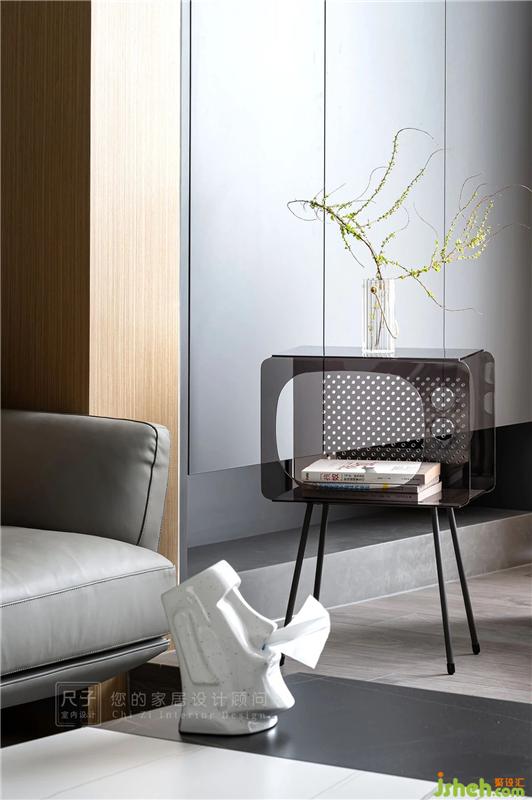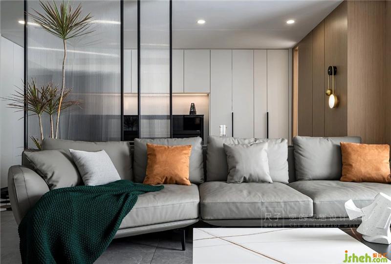 ③放大空間:讓空間盡可能地顯得更大更開闊,這也是業(yè)主的訴求之一,我們將可拆改的墻體完全打開,以通透的長虹玻璃等材質(zhì)打造大空間感
