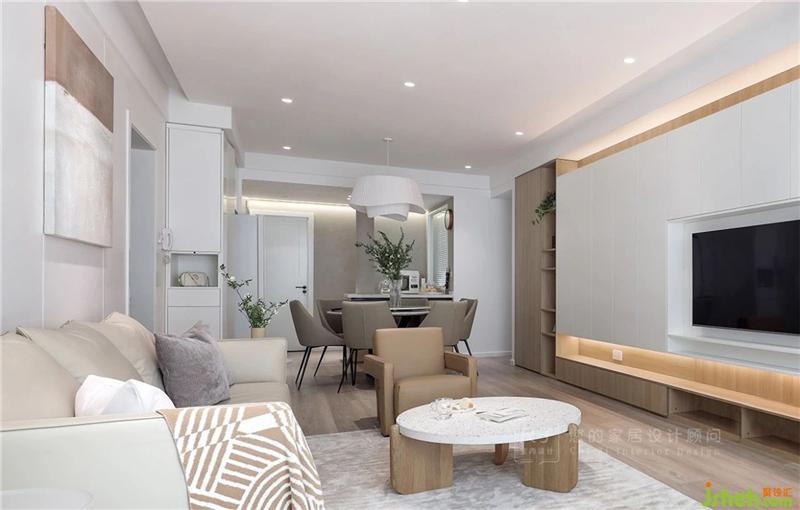 ①一體化公共空間:客餐廚完全打開,客廳陽臺打通,擴(kuò)大室內(nèi)使用面積,改善公共空間采光通風(fēng)