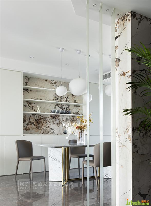 家居裝修以屏風(fēng)為媒介,借此取景,將餐廳的景色嵌于這方寸之間;開放式的格局設(shè)計(jì)也讓餐廳與各個(gè)空間形成了良好互動(dòng),為一家人的日常交流提供了更為開闊的環(huán)境。