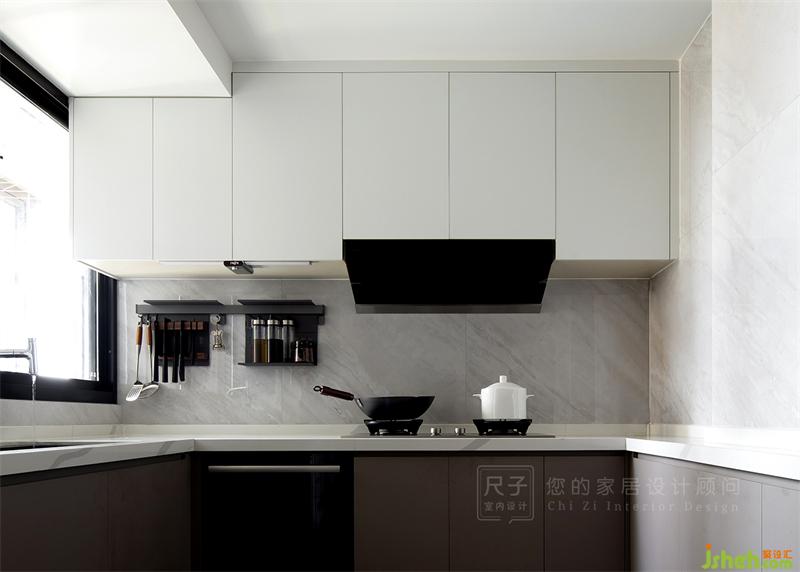 廚房外擴(kuò),借用部分生活陽臺(tái)的空間來增加廚房使用面積,亦解決了廚房的采光問題。