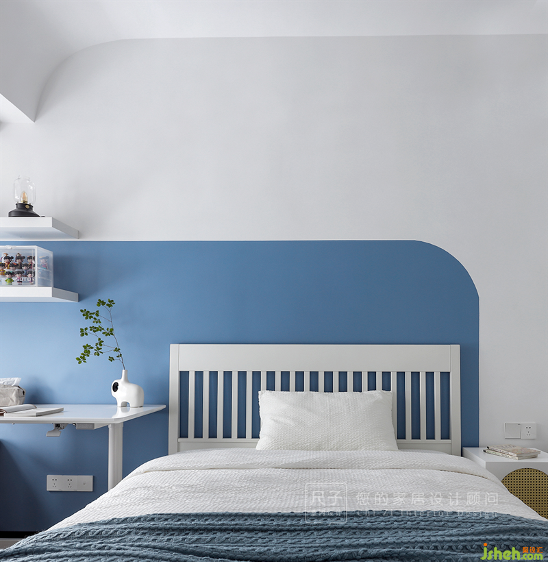相對于整個(gè)家的搭配,這個(gè)空間顯得活潑很多,一抹靚麗的藍(lán)色,讓原本面積稍顯局促的小孩房變得清新明亮。
