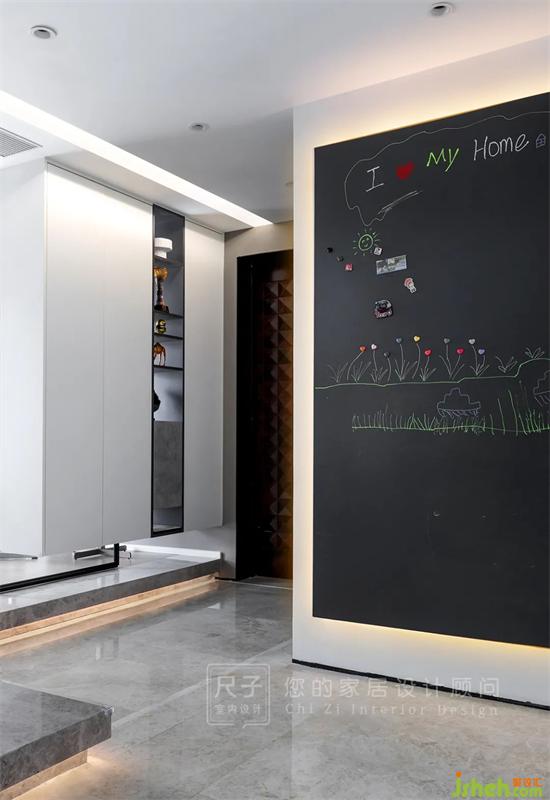 角落里的黑板墻,書(shū)寫(xiě)著家長(zhǎng)里短;一本正經(jīng)地站在那的小熊,似乎在親切地說(shuō),歡迎回家。