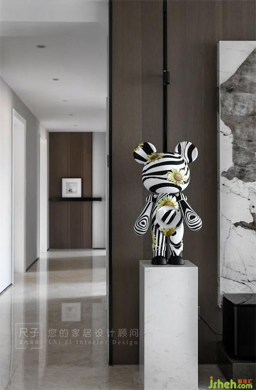 將原有房門換成了干凈的白色靜音門,過道仿佛都明亮了起來。過道端頭設(shè)置了一面靈活的裝飾墻,家中小孩的畫作,朋友贈(zèng)品,可以不定期更換,讓家中景色常新。