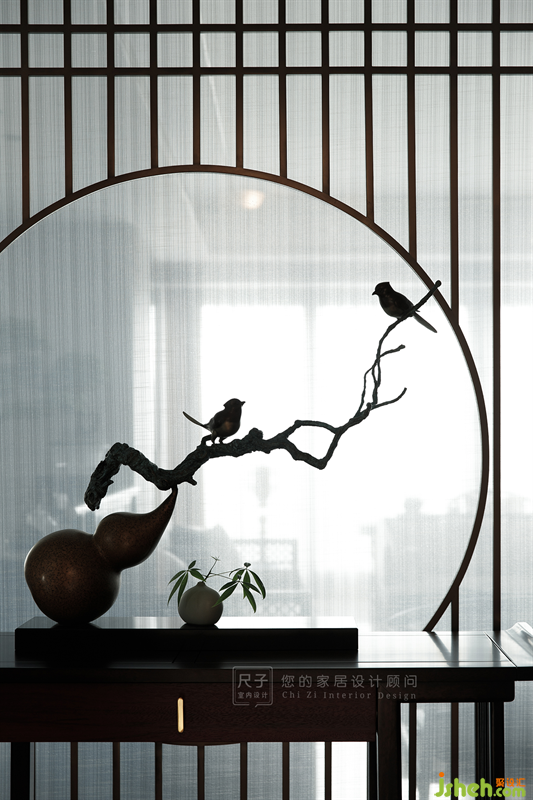 屏風(fēng)與葫蘆裝置兩者的結(jié)合清新淡雅,流轉(zhuǎn)自然,清風(fēng)拂過(guò),仿佛能聽見婉轉(zhuǎn)的鳥鳴。