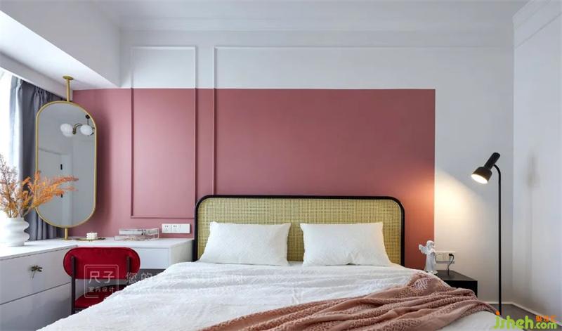 靠窗處將飄窗改為更加實(shí)用的梳妝臺(tái),可旋轉(zhuǎn)的梳妝鏡,縱橫交錯(cuò)的藤編床頭,織就精致又實(shí)用的臥室。