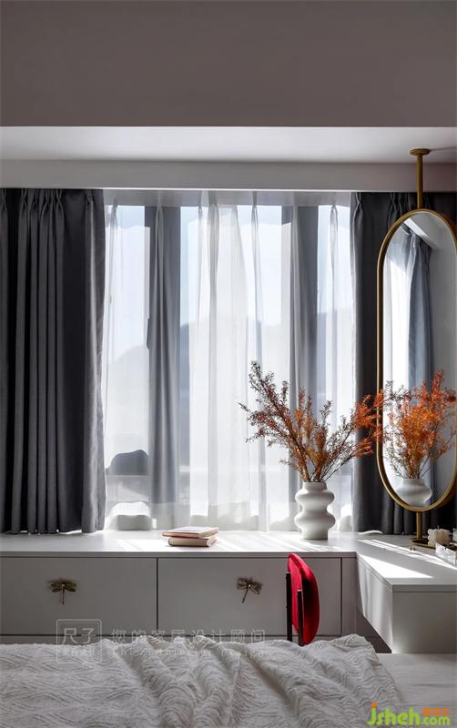 衣帽間定制了時(shí)尚的黑玻衣柜,還利用飄窗臺(tái)做了懸空書桌設(shè)計(jì),將書房的功能結(jié)合起來(lái),這里也是可以隨手翻看書籍的角落。