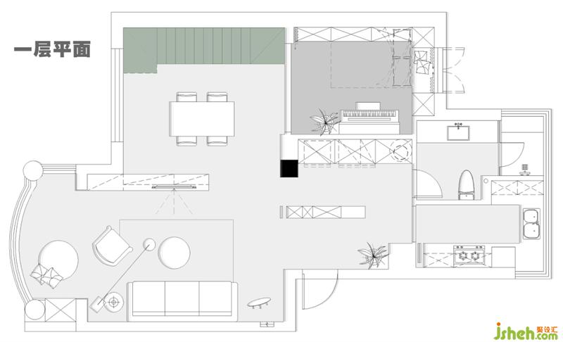 改造后一層作為整個(gè)家的活動(dòng)區(qū),是一個(gè)開放通透的大空間。