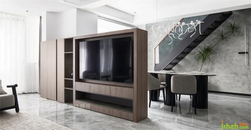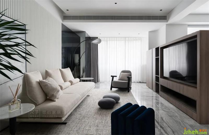 客廳處的陽臺(tái)納入室內(nèi),增加使用面積的同時(shí)也讓光線最大化進(jìn)入到空間內(nèi)。簡(jiǎn)約的大背景下,通過不同材質(zhì)、紋理來豐盈整個(gè)空間。