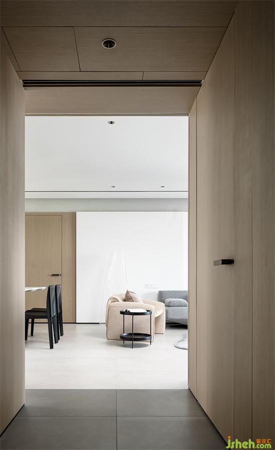 玄關(guān)是重要的過(guò)渡空間,深色的瓷磚結(jié)合木質(zhì)天花,我們用一個(gè)“木盒子”將玄關(guān)區(qū)域清晰界定出來(lái),深圳家裝設(shè)計(jì)讓人真切感受到從戶(hù)外回到了自己的私人領(lǐng)地。