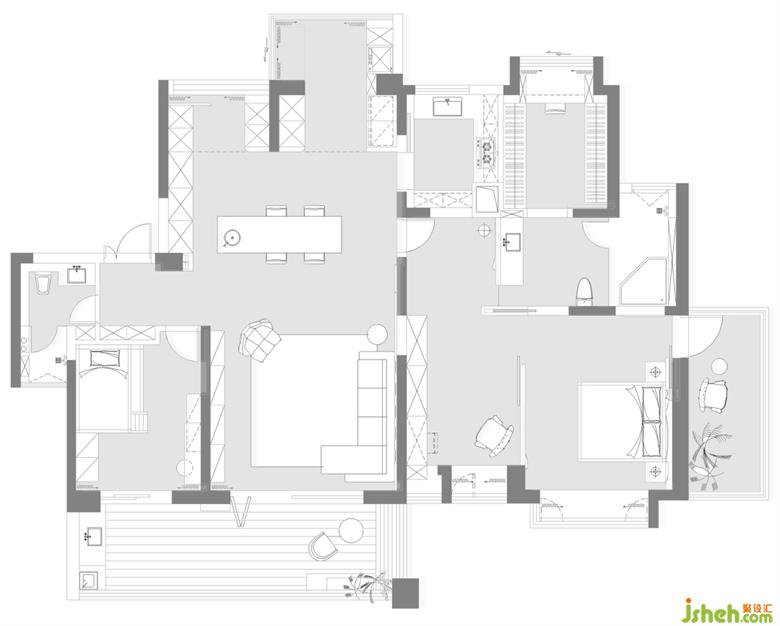 結(jié)合戶(hù)型的實(shí)際情況,便有了這個(gè)175㎡的兩房空間。