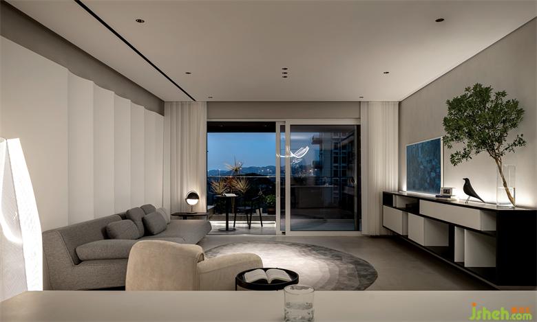 獨(dú)立的內(nèi)玄關(guān),保證了相對私密的空間界定,以及居住的儀式感。深圳家裝設(shè)計(jì)墻面嵌入了磨砂玻璃,以此改善內(nèi)玄關(guān)與主衛(wèi)的采光。