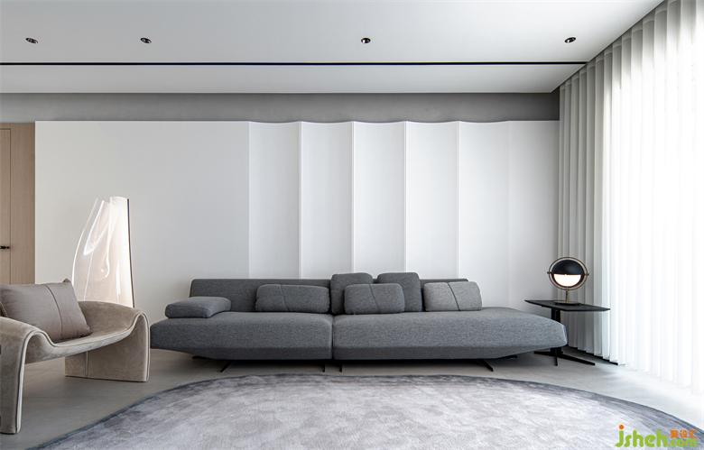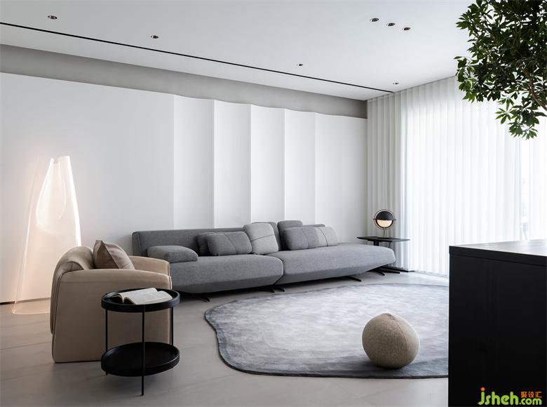 屋主希望家里是開闊通透的,于是便舍棄了笨重的茶幾,深圳家裝設(shè)計(jì)以一塊不規(guī)則造型的地毯,圈出適合孩子玩樂的“安全區(qū)”。