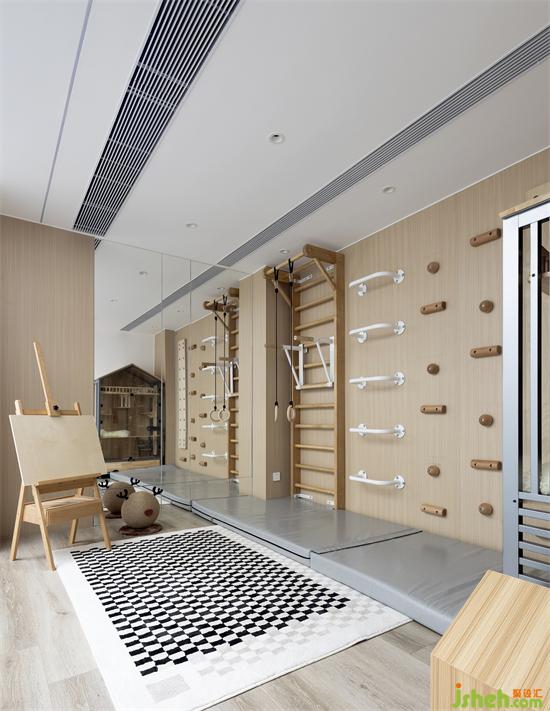 一邊是小孩的健身區(qū)以及貓屋,孩子們可以在此盡情攀爬、健身。