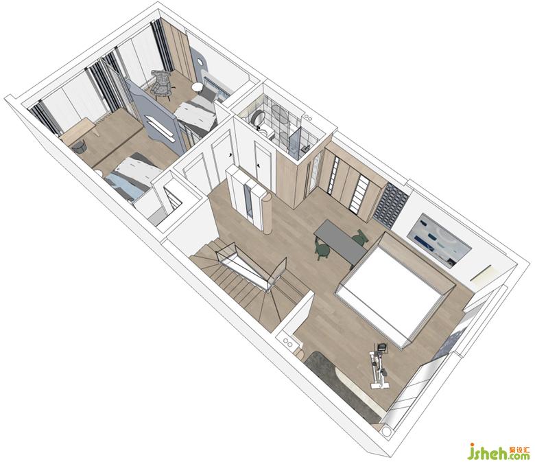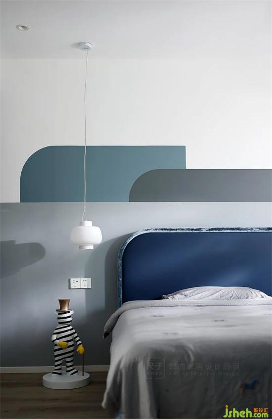 另一頭是孩子們的臥室,高級(jí)灰做底,藍(lán)色加以點(diǎn)綴,深圳聯(lián)排別墅設(shè)計(jì)色塊組合讓空間更具靈動(dòng)層次感。