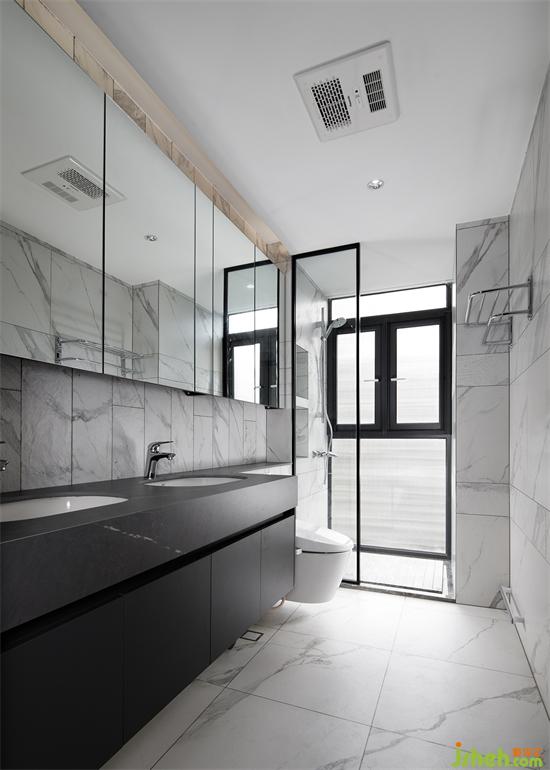 深色系的配色讓視覺從客廳背景的黑色地臺延伸到書房,深圳家裝設(shè)計通過統(tǒng)一深度、不同材質(zhì)和分割手法的變化,大理石、玻璃、木材、啞光不銹鋼的肌理詮釋出空間的純粹、精致,以及書房沉穩(wěn)的氛圍。