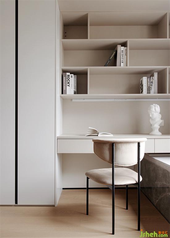 書房位于過道的尾端,通過隱藏式的推拉門,實現(xiàn)空間的可開可合。