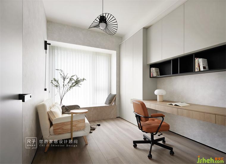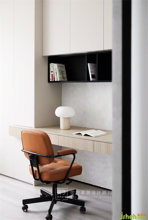 白+木色明度較高不壓抑,家裝設(shè)計綠枝賦予生命力,朦朧陽光為書房帶來一絲溫柔。