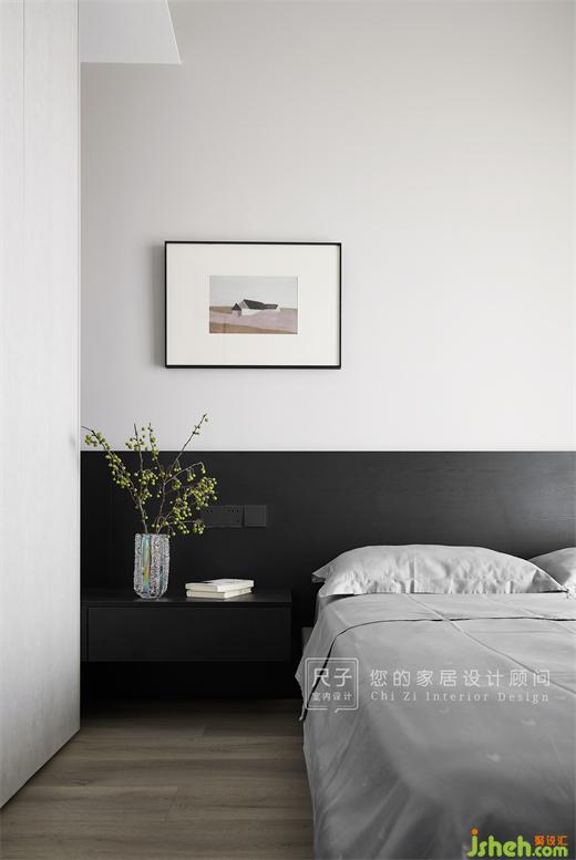 黑白灰干練的配色簡潔明了又不失質感,是永不過時的經(jīng)典搭配,墻上的掛畫和小蘋果綠植為空間營造溫馨舒適的氛圍。