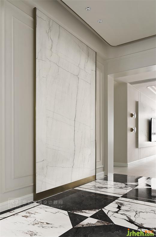入戶豎廳的布局,玄關(guān)在客餐廳光線的暈染下,黑白瓷磚、巖板、金屬,在奶油色的基調(diào)中,呈現(xiàn)華麗且溫和的氛圍,法式線條元素結(jié)合,切實(shí)演繹精致與優(yōu)雅。